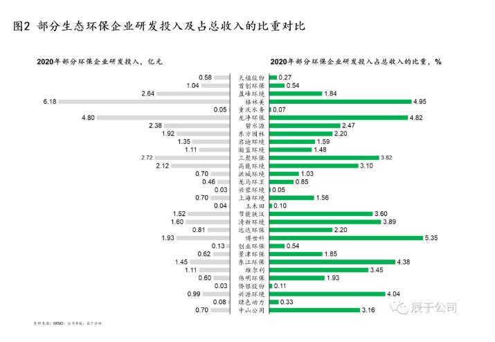 另外我们也注意到,有些生态环保企业通过新设或并购拥有了自己独立的技术公司,其初心是:一方面服务内部,为各业务条线的项目提供技术支持,提升研发创新、技术支持、设备集成等方面能力;另一方面服务外部,通过内部项目总结经验,形成有自身特色的技术/产品方案/体系,拓展外部市场,成为公司轻资产战略的践行者与引领者,带来新的收入与利润增长点。